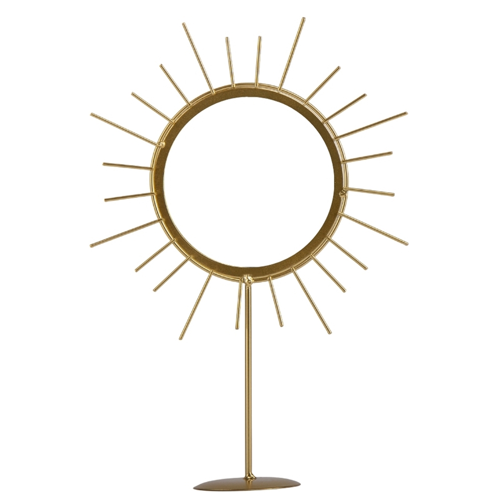 Настільне косметичне дзеркало у вигляді сонячних промінчиків - це витончений аксесуар, що перетворює ранковий ритуал на справжню церемонію догляду за собою. Його золотий відтінок додає нотку розкіші і блиску. Компактний розмір і елегантна форма дозволяють зручно розмістити його на будь-якому столику або поличці. Це дзеркало не лише незамінний помічник у денному макіяжі, а й вишуканий елемент декору, який може підкреслити стиль вашого косметичного куточка. Воно поєднує в собі функціональність та елегантність, роблячи процес догляду за собою ще більш приємним і витонченим.