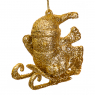 Ялинкова іграшка "Дід Мороз на санях" зображує казкового персонажа у польоті на санях, який поспішає з мішком подарунків на свято до дітей. Прикраса виготовлена з пластику і покрита блискучим напиленням з блискітками. Подібний підвісний декор гармонійно виглядає на новорічному дереві, контрастує та блищить. Іграшка підійде не тільки для ялинки, але й для святкових композицій із природних та штучних матеріалів.