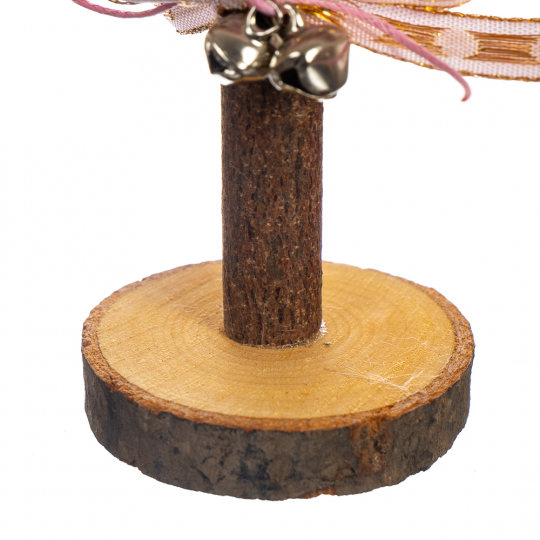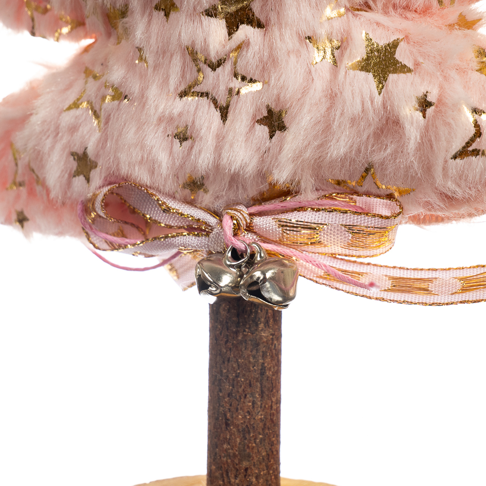 Новорічні прикраси задають особливий характер та тон атмосфері вашого будинку. Якщо ви цінуєте комфорт та душевний затишок, фігурка новорічної ялинки виправдає ваші очікування. Ялинка створена з волокна, пухнаста, рожевого кольору, з вишитими зірочками. Стоїть на практичній ніжці із дерева.