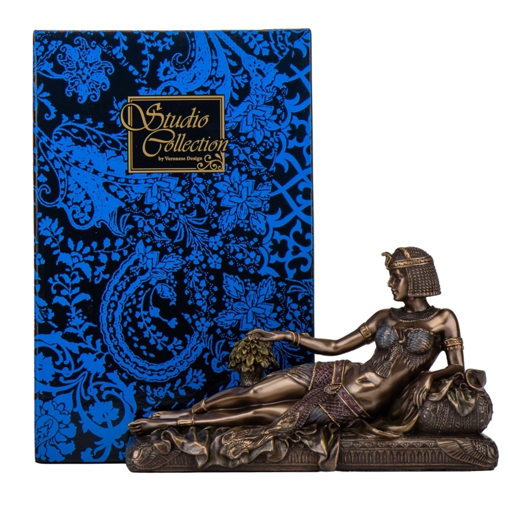 Висота статуетки - 14 см, довжина - 23 см, ширина - 9 см. Статуетка Veronese виготовлена з полістоуну (штучного каменю) та покрита бронзовим напиленням. Клеопатра - символ влади, краси та інтриги Давнього Єгипту. Вона відома як остання фараон Єгипту та одна з найвпливовіших жінок свого часу. Статуетка Клеопатри - це втілення грайливого духу, сили та краси в одній особі. Її образ відображає сміливість та владу, а також витонченість та жіночність. Цей подарунок може бути цінним для людей, які цінують історію, мистецтво та культуру, а також для тих, хто шукає натхнення в сильних та незалежних жінках. Запакована в гарну подарункову коробку. Тож купуючи цю статуетку, Ви отримуєте цінний і гарний подарунок, який не вимагає доповнення. Завдяки надійній внутрішній упаковці, виготовленій з пінопласту з поглибленнями для найменших деталей, Ви можете бути впевненими у безпеці при транспортуванні.