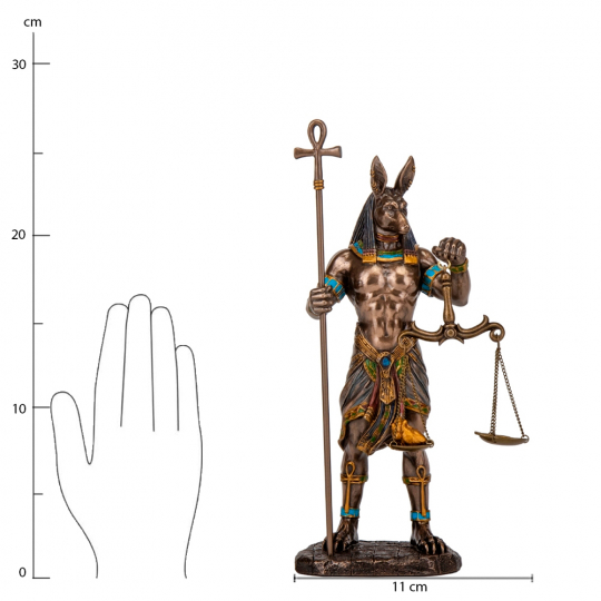 Висота статуетки - 27 см, довжина - 13 см, ширина - 9 см. Статуетка Veronese виготовлена з полістоуну (штучного каменю) та покрита бронзовим напиленням. Анубіс - це один з найвідоміших богів давнього Єгипту, який вважався покровителем поховальних ритуалів та потойбічного світу. Статуетка "Анубіс" зображує бога з головою шакала, який відігравав важливу роль у процесі муміфікації та супроводження душ померлих до потойбічного світу. Він тримає в руках анх - символ життя та терези з серцем та пером. Серце виступає як символ душі та моральної чистоти, а перо представляє правдивість та праведність. Статуетка Анубіса може бути чудовим подарунком для тих, хто цікавиться давньоєгипетською міфологією та культурою, а також для колекціонерів античних артефактів. Вона може послужити як символ захисту від зловісних сил та переходу до потойбічного світу, а також як об'єкт для духовної медитації та роздумів. Запакована в гарну подарункову коробку. Тож купуючи цю статуетку, Ви отримуєте цінний і гар