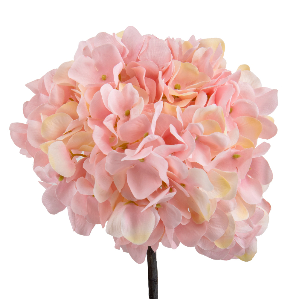 Штучна рожева гортензія - це витончено виготовлена репліка природньої гортензії з усією її ніжністю та красою. Кожна пелюстка виглядає максимально реалістично, зі збереженням всіх дрібних деталей та текстур, характерних для справжньої квітки. Використаний матеріал забезпечує стійкість квітки та її природний вигляд протягом тривалого часу. Штучна гортензія прекрасно підходить для декорування будь-якого інтер'єру, святкових подій, весільних букетів, створення елегантних композицій тощо. Матеріал - тканина, пластик. Висота - 42 см.