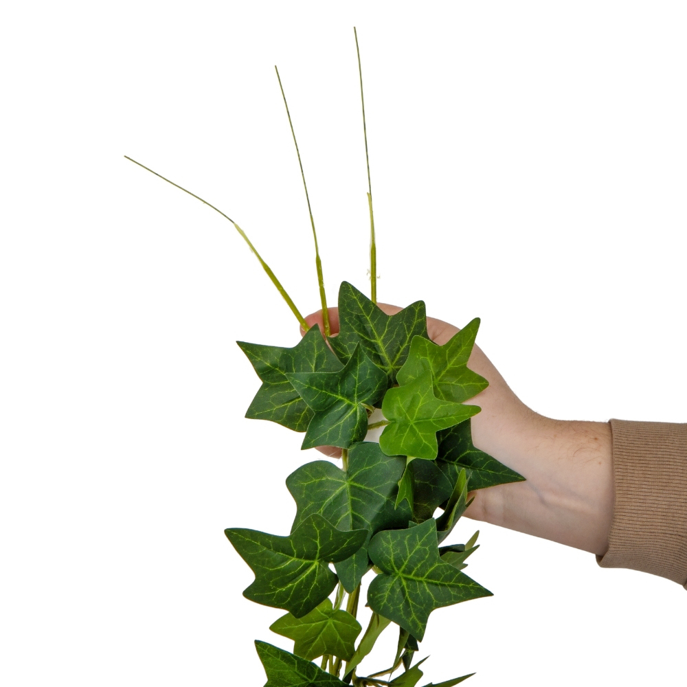У пучку 3 гілки. Довжина - 2 м. Штучний плющ - це відмінна альтернатива живому рослинному плющу, який приваблює своєю неперевершеною зеленню та природнім виглядом. Він має натуральну текстуру та колір листя. На відміну від живого плющу, штучний варіант не потребує регулярного поливу, обрізання або особливого догляду. Ви можете насолоджуватися його красою без зайвих зусиль. Штучний плющ може бути використаний для оздоблення інтер'єру будинку, офісу, ресторану, готелю чи іншого приміщення. Він додає затишку та природності будь-якому простору. Штучний плющ зберігає свій вигляд протягом тривалого часу без втрати своєї краси. Він не вигоряє на сонці та не втрачає свою форму під впливом часу. Цей декоративний елемент стане чудовим доповненням до вашого інтер'єру, дозволяючи створити неповторну атмосферу затишку та природності.