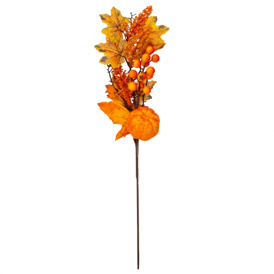 Висота - 54 см, ширина - 20 см. Декоративна гілочка з осіннім листям та гарбузиком - справжнє втілення природної краси та чарівності. Гілочка вкрита різноманітними відтінками жовтого, червоного і помаранчевого, створюючи реалістичне враження, ніби сама природа розфарбувала цю гілку художніми пензлями. Декоративна гілочка - ідеальний спосіб прикрасити вашу осінню оселю, фотостудію, кафе, тематичне свято, додаючи теплого та затишного настрою.