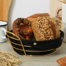 Діаметр хлібниці - 23,5 см, ширина з ручками - 26 см, висота - 8 см, з ручками - 11,5 см. Металева золота хлібниця з тканиною на застібках - не тільки практичний, але й чудовий декоративний елемент, який додасть елегантності кухонному інтер'єру. Наявність ручок робить хлібницю легко переміщуваною. Хлібницю легко чистити, тканину можна зручно відстібнути та попрати, забезпечуючи при цьому довговічність та збереження естетичного вигляду. За потреби, тканину можна зняти та використовувати ємність в якості естетичної підставки для фруктів, овочів тощо. Золоте забарвлення та сучасна форма роблять хлібницю стильним акцентом на кухні у кожному домі, кафе, фотостудії тощо.