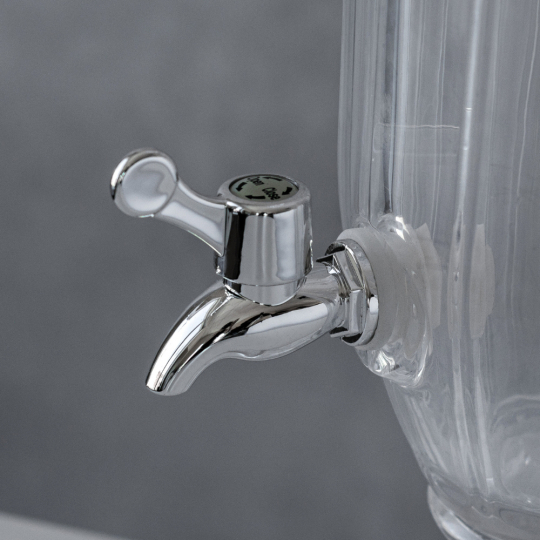 Скляна лимонадниця на 2 літри. Висота - 44 см, діаметр - 16 см, кран - 7 см, підставка - 12,5 см. Запакована в подарункову коробку. Це елегантний та практичний посуд, який стане чудовим доповненням до будь-якого обіду, вечірки, сімейного заходу або декору фотостудії, кафе тощо. З розміром 3 літри ця лимонадниця може зберігати достатню кількість лимонаду, фруктових напоїв або холодних чаїв, щоб задовольнити потреби гостей або родини під час вечірки чи відпочинку на відкритому повітрі. Скляна конструкція лимонадниці надає їй елегантний та сучасний вигляд, що дозволяє підкреслити красу та яскравість напоїв всередині. Зручна кришка з краном дозволяє легко наливати напої без ризику розлиття або розбризкування. Міцне та стійке дно забезпечує стабільність лимонадниці на столі або на відкритому повітрі. Високоякісне скло дозволяє легко мити лимонадницю після використання.