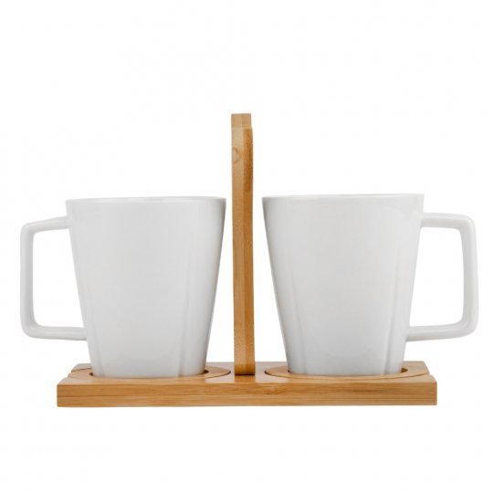 Набор кружек с бамбуковой подставкой "Белая симфония", 260 мл (00BR-4004-001)