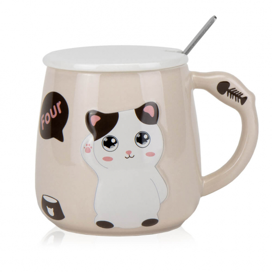 Керамічна кружка "Four cats" має милий дизайн - зображення котиків та ніжні відтінки радують око! Кружка також має керамічну кришку і срібну ложку. Така кружка в пастельних тонах буде відмінно виглядати на кожній кухні. Це відмінний варіант подарунка на будь-яке свято! Рідні, діти, друзі будуть в захваті і зворушені такою чарівною кружкою! Обсяг цієї кружки становить 450 мл.