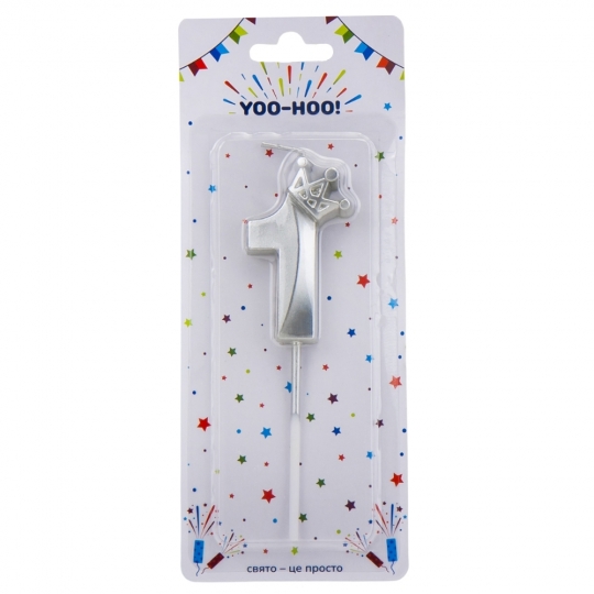 > Свеча для торта "1", серебряная, 13 см (9074-047)